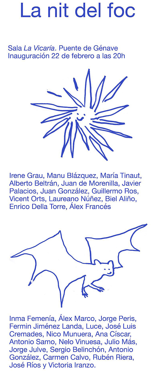 With Carmen Calvo, Ting-Ting Cheng, José Luis Cremades, Javi Cruz, Folkert de Jong, Julie C. Fortier, Fuentesal & Arenillas, Rubén Guerrero, Lamarche-Ovize, Álex Marco, Javier Palacios, José Miguel Pereñíguez, Jorge Peris, Cachito Vallés, Darío Villalba.