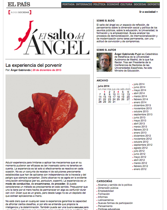 Angel Gabilondo, ex-Minister of Education, used “Soul” paintings to illustrate his written “La experiencia del porvenir”.